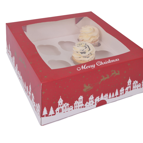 MINI 24 cupcakedoos Kerst met venster met inleggers-2 stuks in retailverpakking
